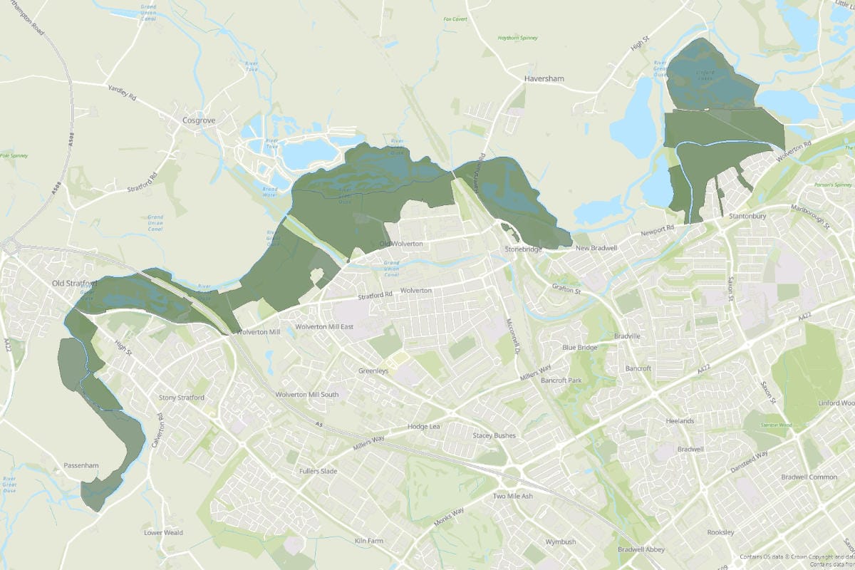 The Wetland Arc stretches across the north of Milton Keynes along the River Great Ouse.